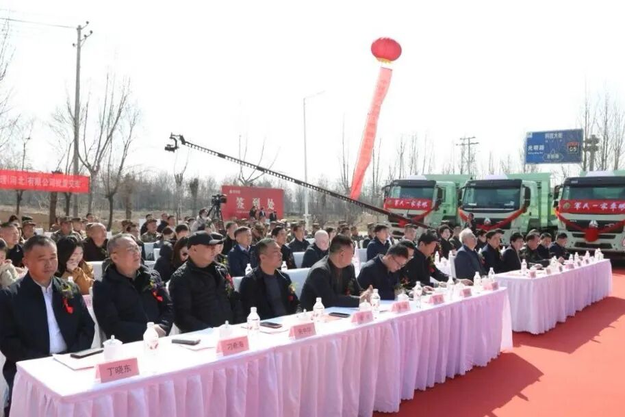随着与会领导为项目启动剪彩,20余辆新能源物流车组成的军民一家车队鸣笛启航,首批驾驶员均为经过培训的退役军人——他们身着统一标识,精神抖擞,以整齐的队列、嘹亮的鸣笛,展现着新时代退役军人的风采,也让“军民一家车队”“以岗位稳就业、以服务暖军心”的核心价值直观呈现。据悉,该项目目前已招聘并上岗60余名退役军人,年内将增加到300名退役军人,形成一支整建制、半军事化的200辆重卡的运输车队,投入到石家庄市乃至及河北省内的重点建设运输项目中,后续将拓展建筑装配、新能源等领域,而车队作为先行示范,将为后续项目落地提供可复制、可推广的实践经验。