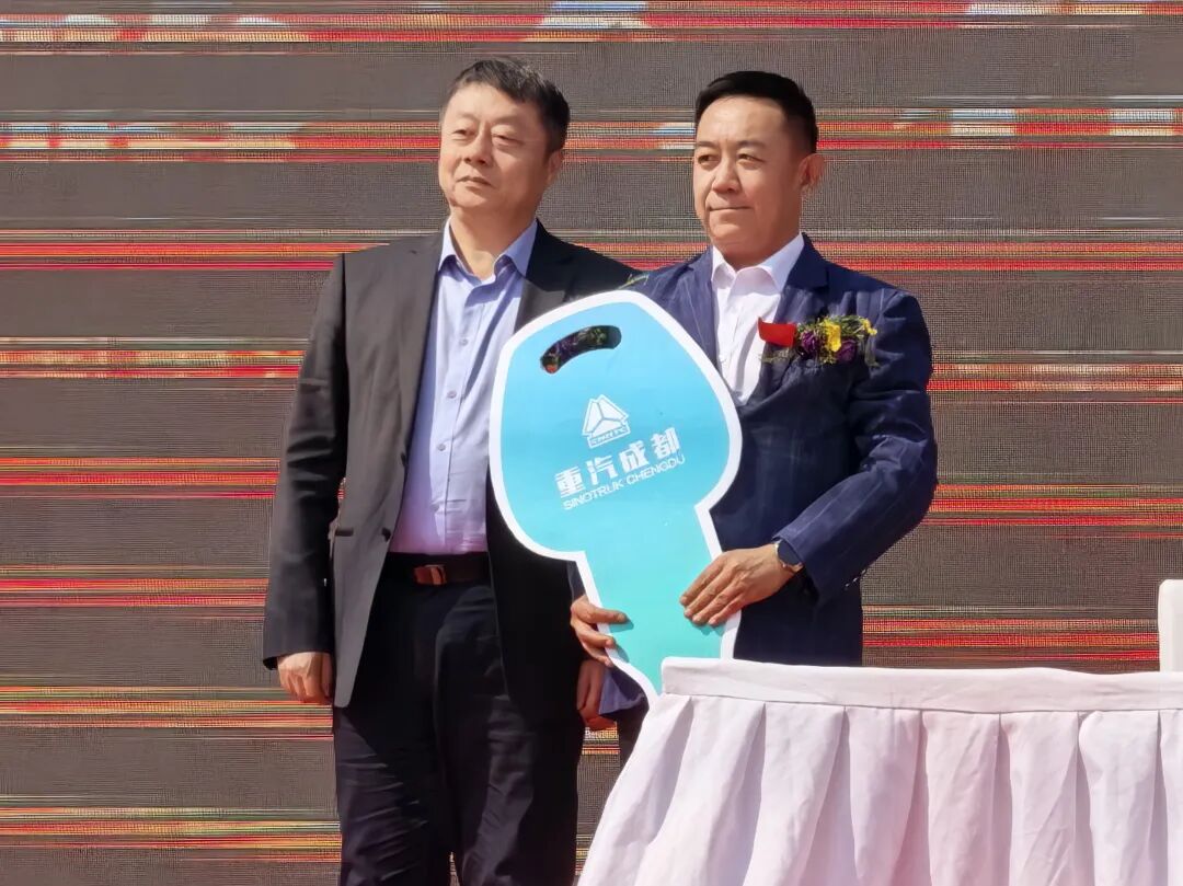 仪式上,省退役军人就业创业促进会为新入会会员单位授牌;中国重汽集团与军地供应链管理(河北)有限公司签署战略合作协议,并向军民一家车队交付车辆钥匙——这批由中国重汽提供的新能源物流车,不仅是车队运营的硬件支撑,更承载着企业拥军、社会崇军的深厚情谊。著名书法家侯振山现场赠送“军民携手 长城永固”书法作品,勉励退役军人永葆本色,而这八个字,也成为军民一家车队的精神坐标。