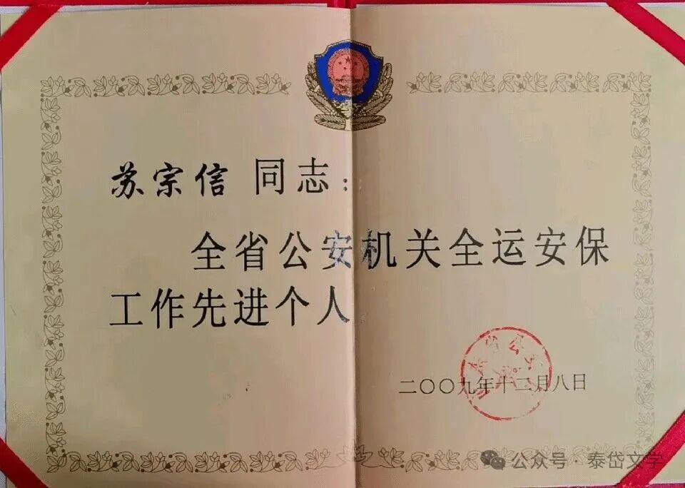 2005年,苏宗信转业至泰安市公安局,从武警副团职干部到公安民警,岗位变换,但其军人的过硬作风、奉献的初心从未改变。在交警、特巡警等多个岗位上,他履职尽责、兢兢业业,获评泰安市优秀公务员、山东省公安厅“十一运安保”先进个人,用实绩诠释“转业不转志、退役不褪色”。